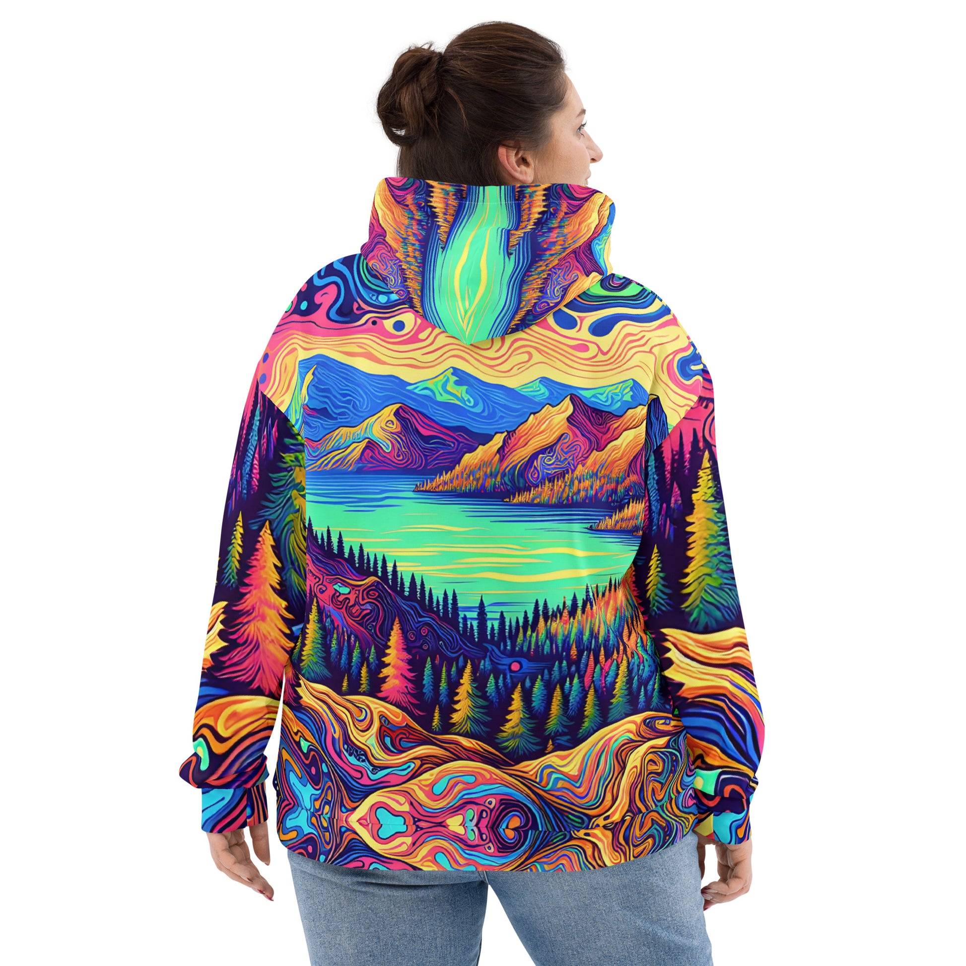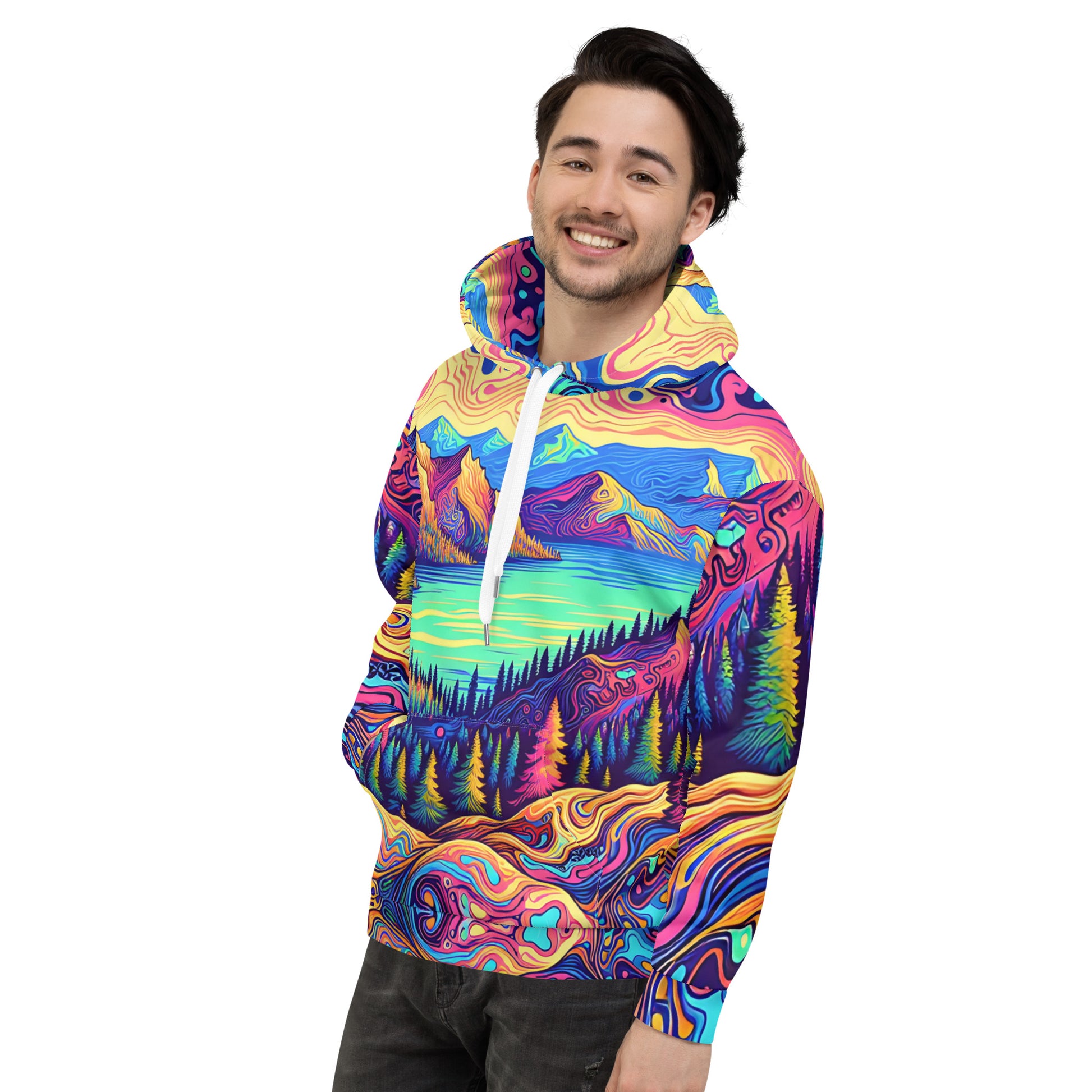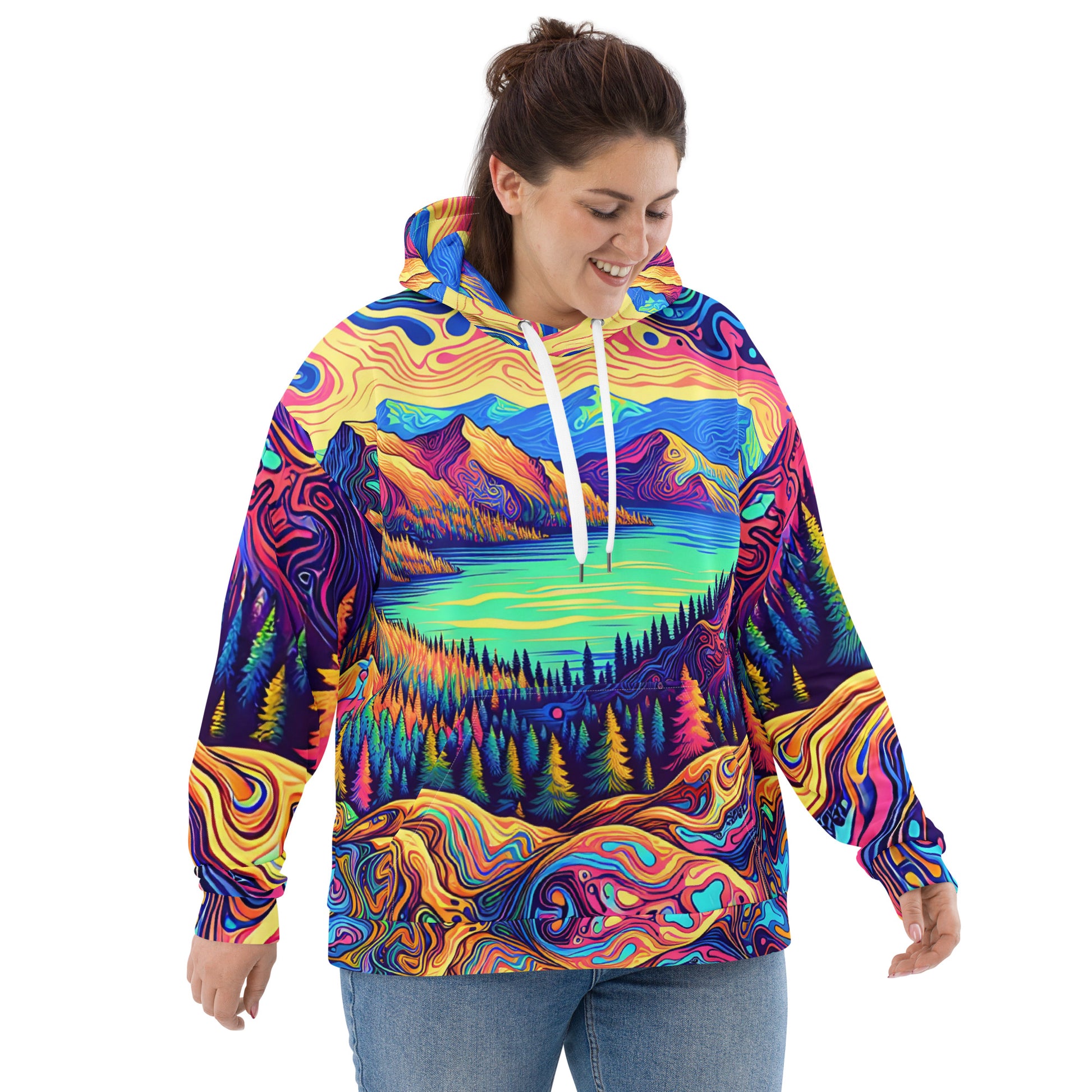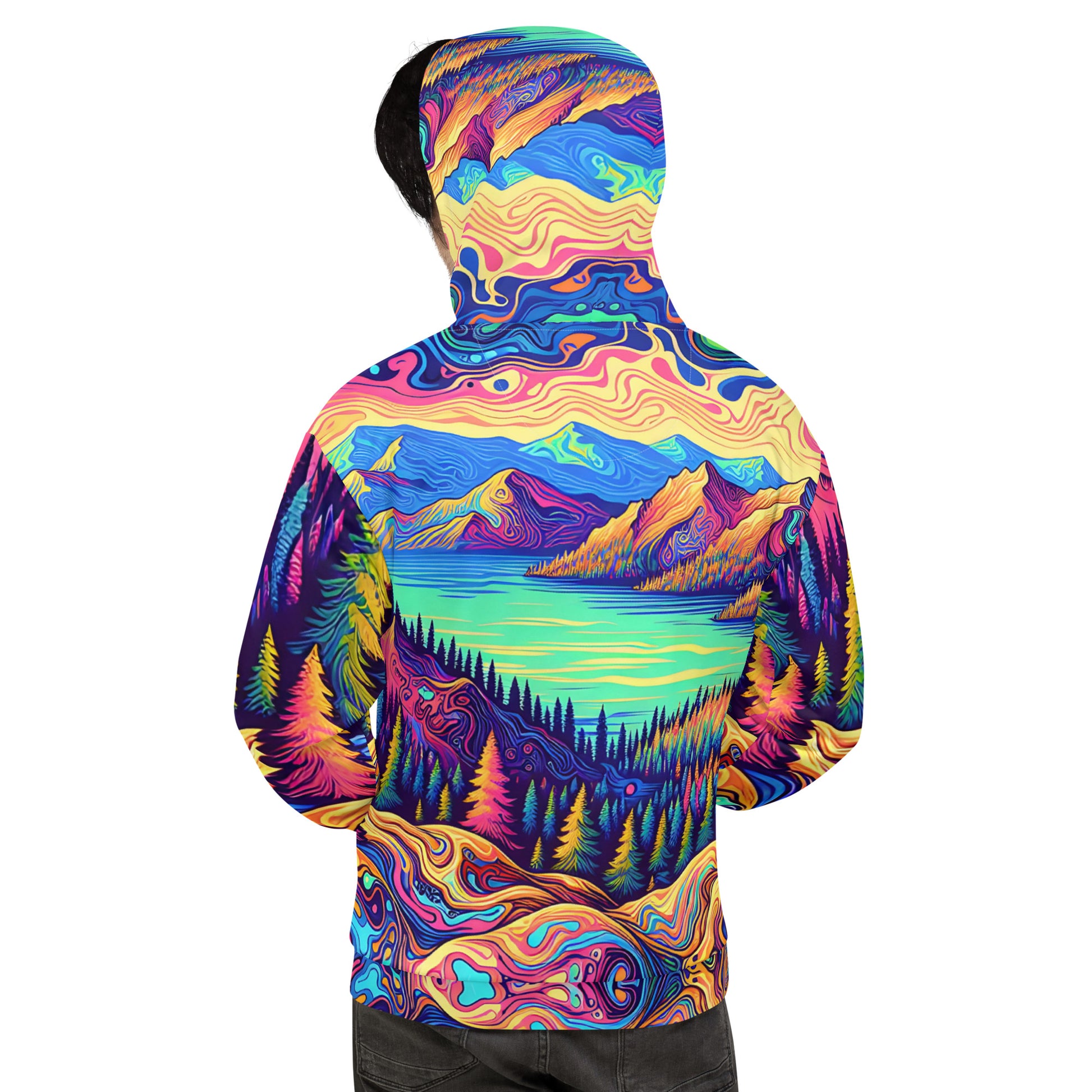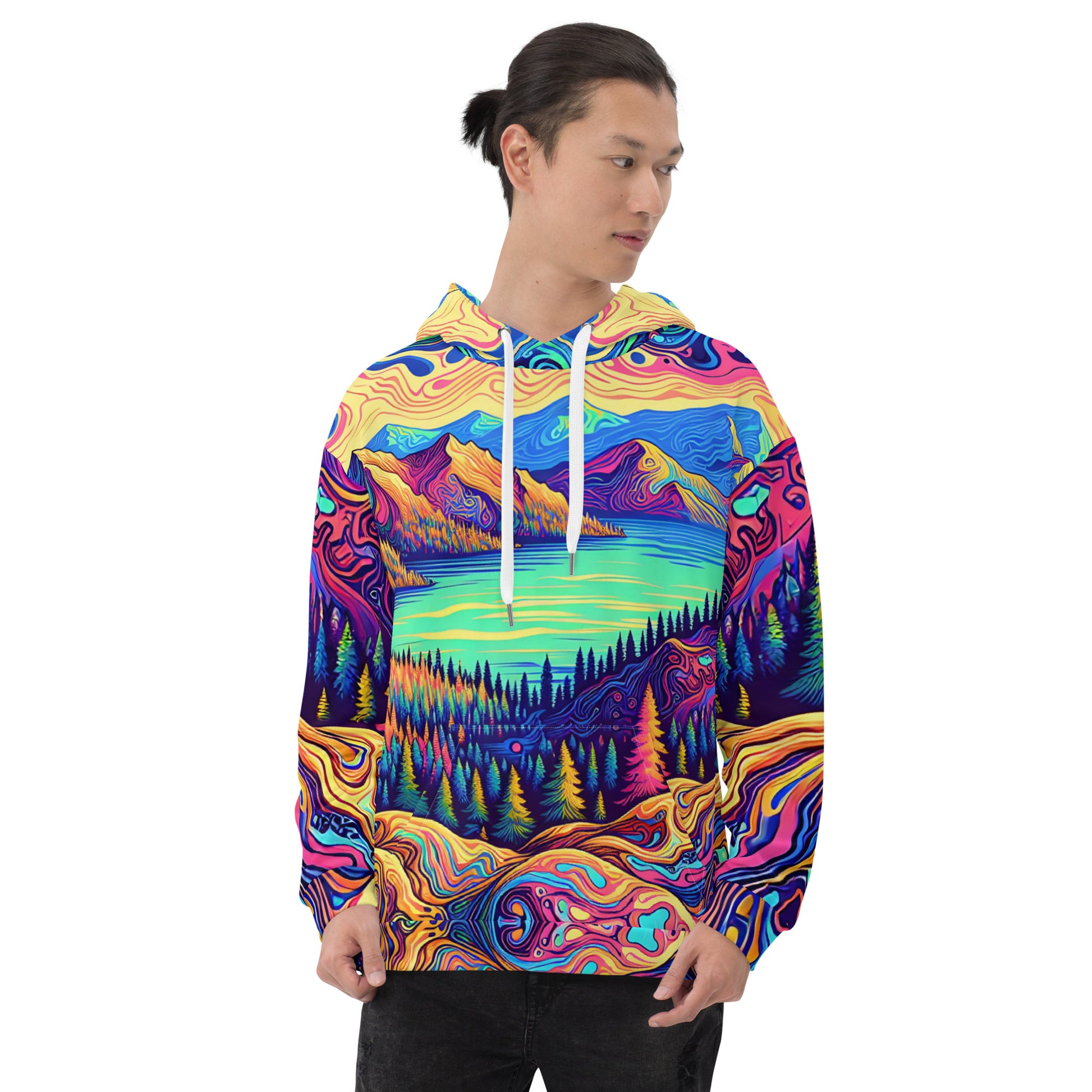 Psychedelic Hoodie Adult, Mountain Lake Forest Landscape All Over Print