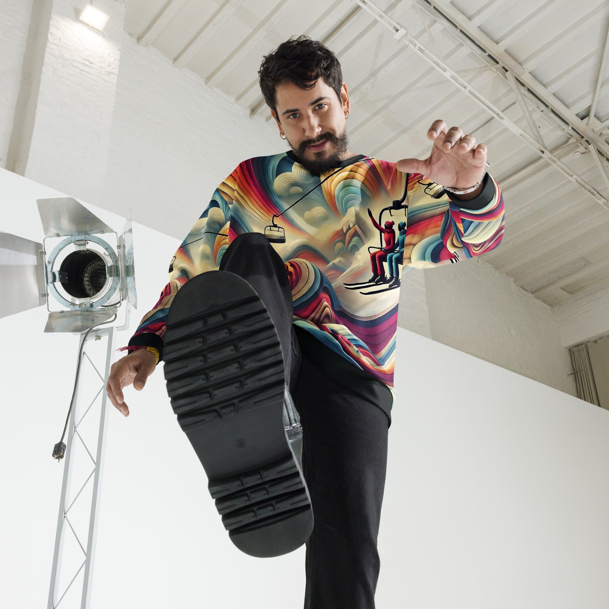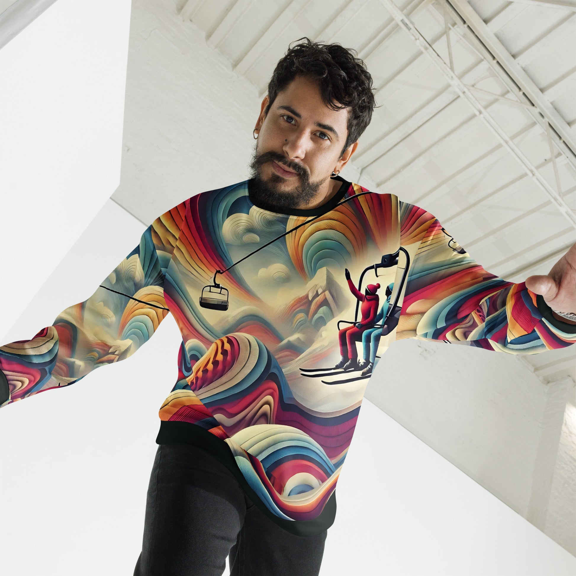Psychedelic Ski Lift Sweatshirt Unisex Crewneck Winter Mountain all Over Print