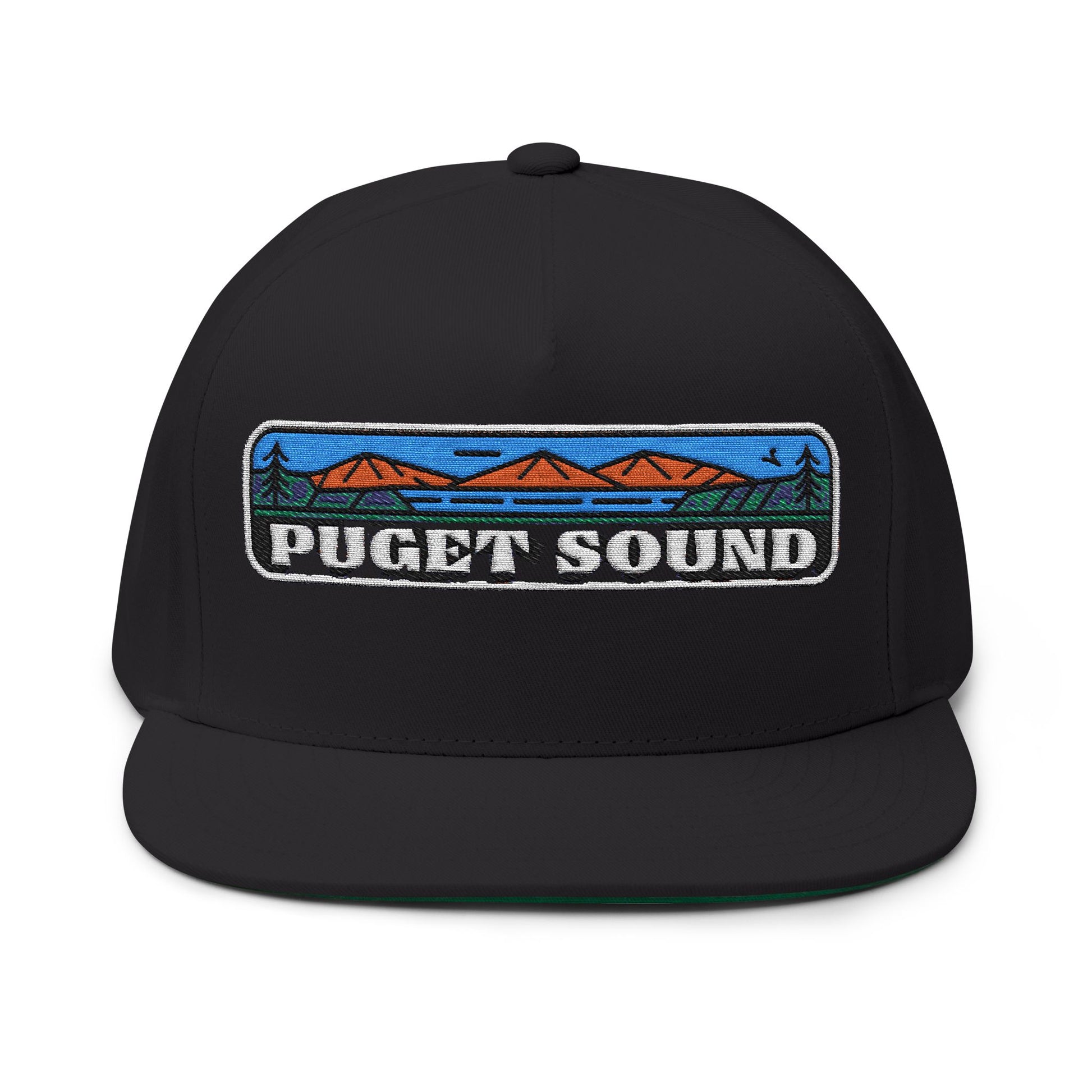 Puget Sound Flat Bill Snapback Hat Outdoor Apparel Adjustable Cap