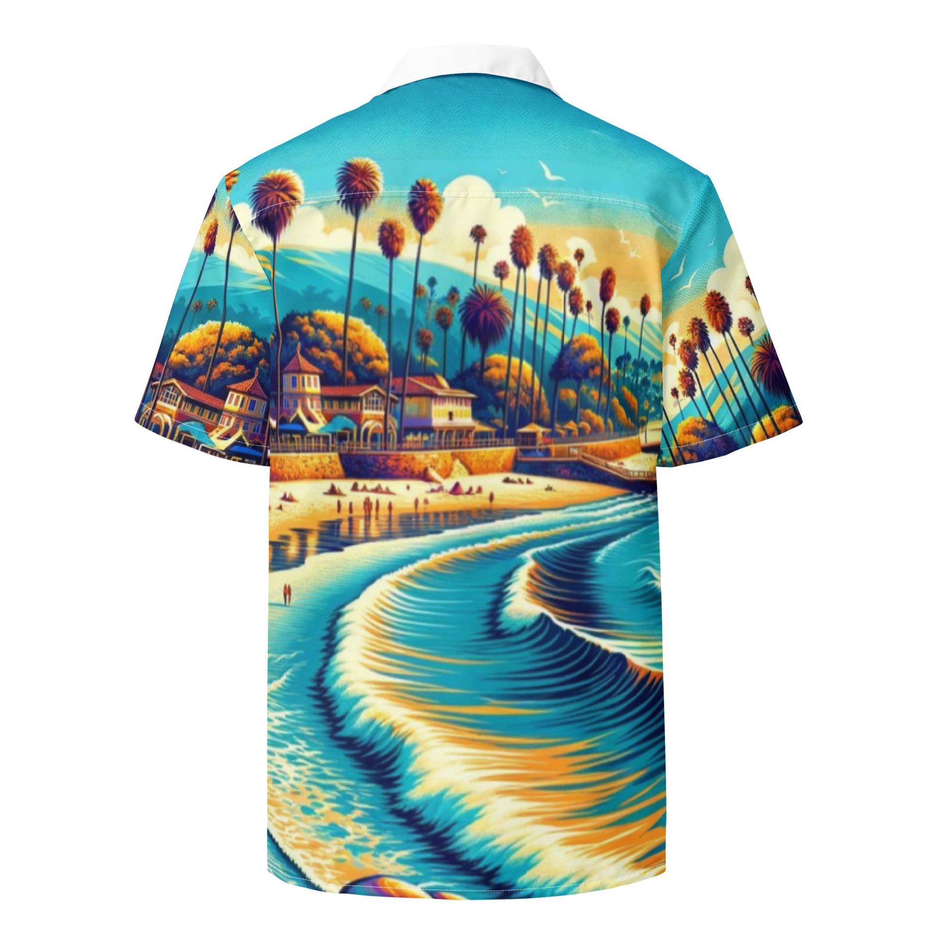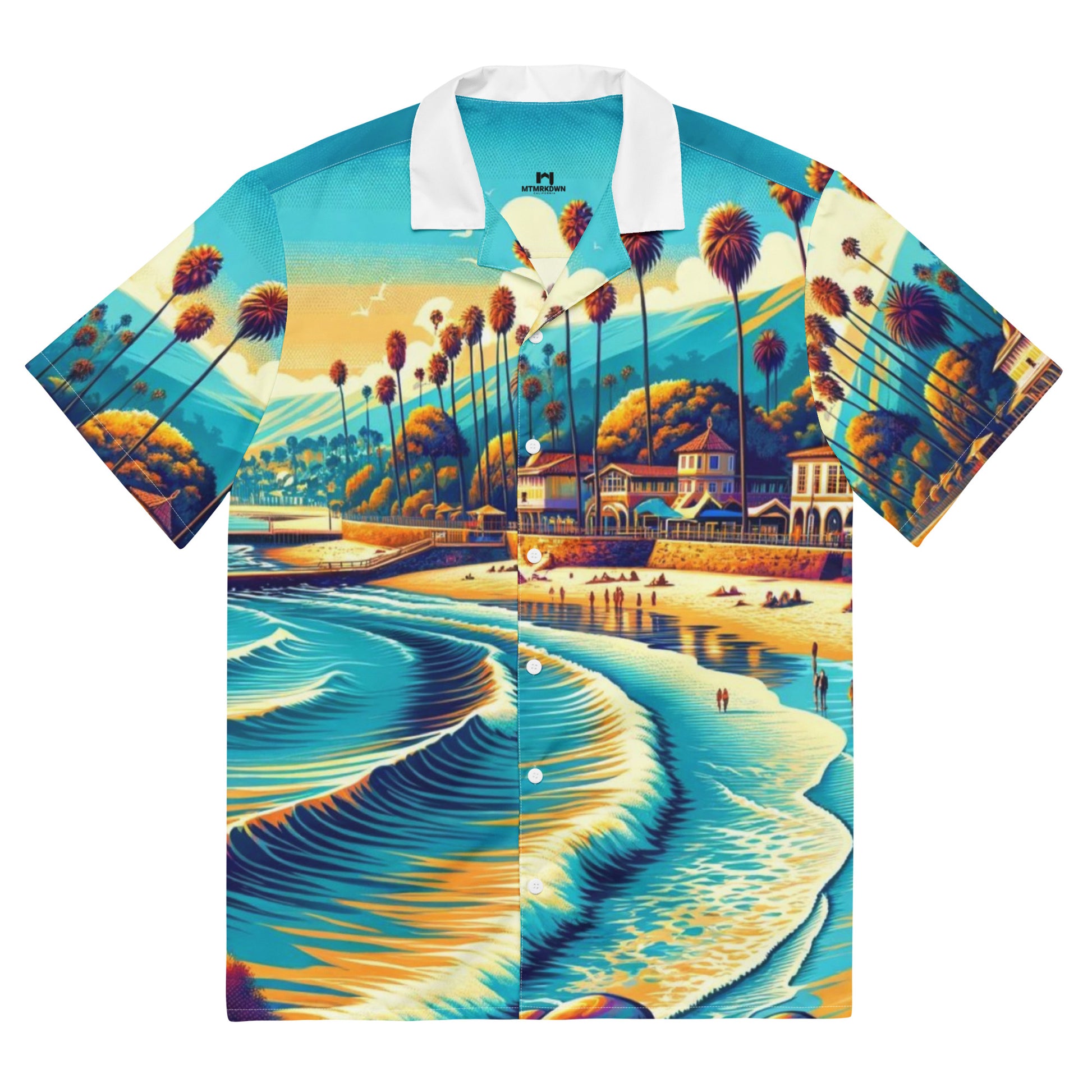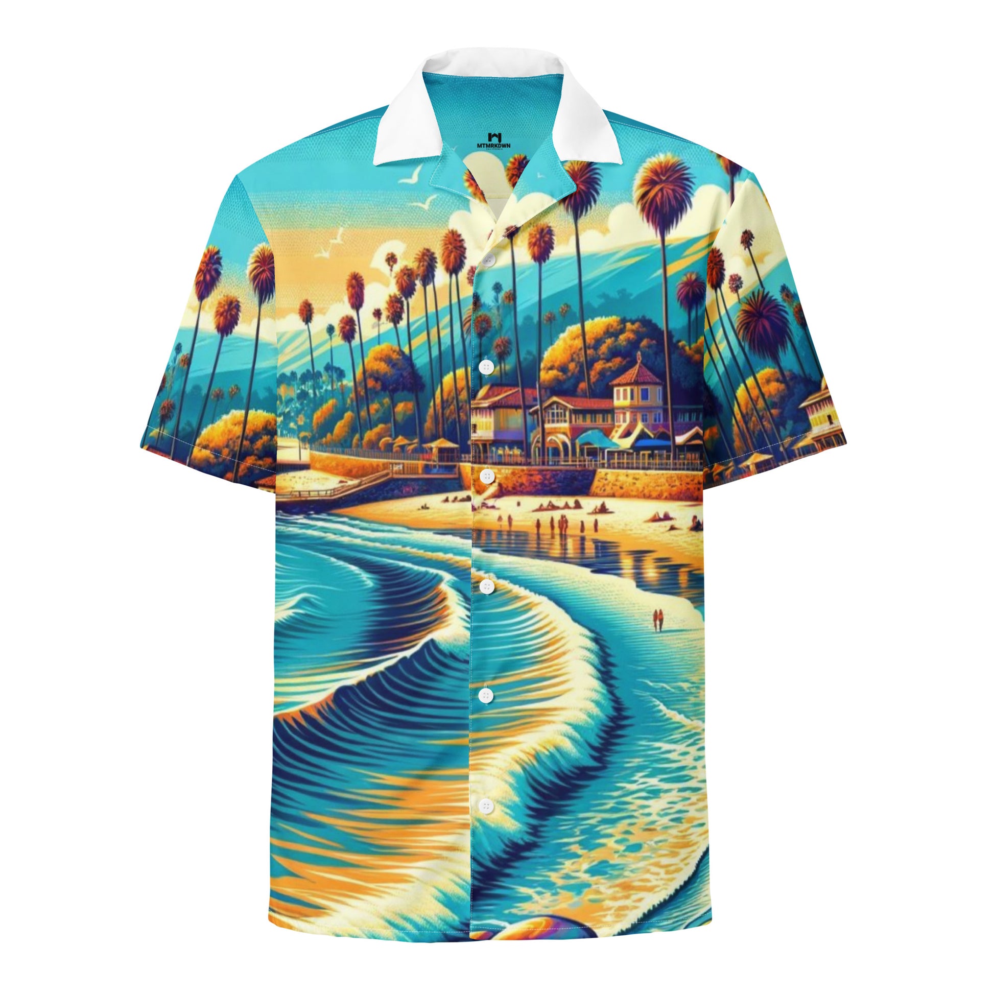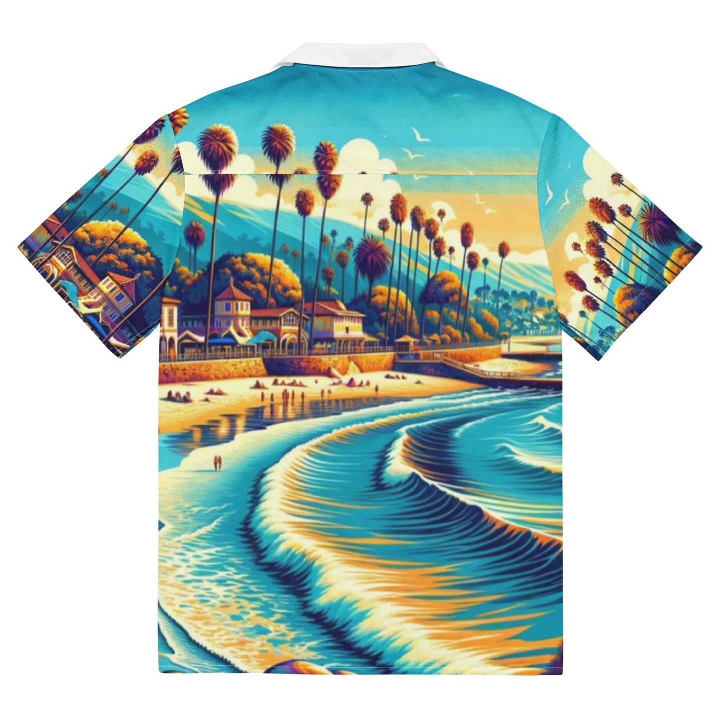 Santa Barbara Beach Scene Button-Up Shirt Adult, California Coastal Art All Over Print