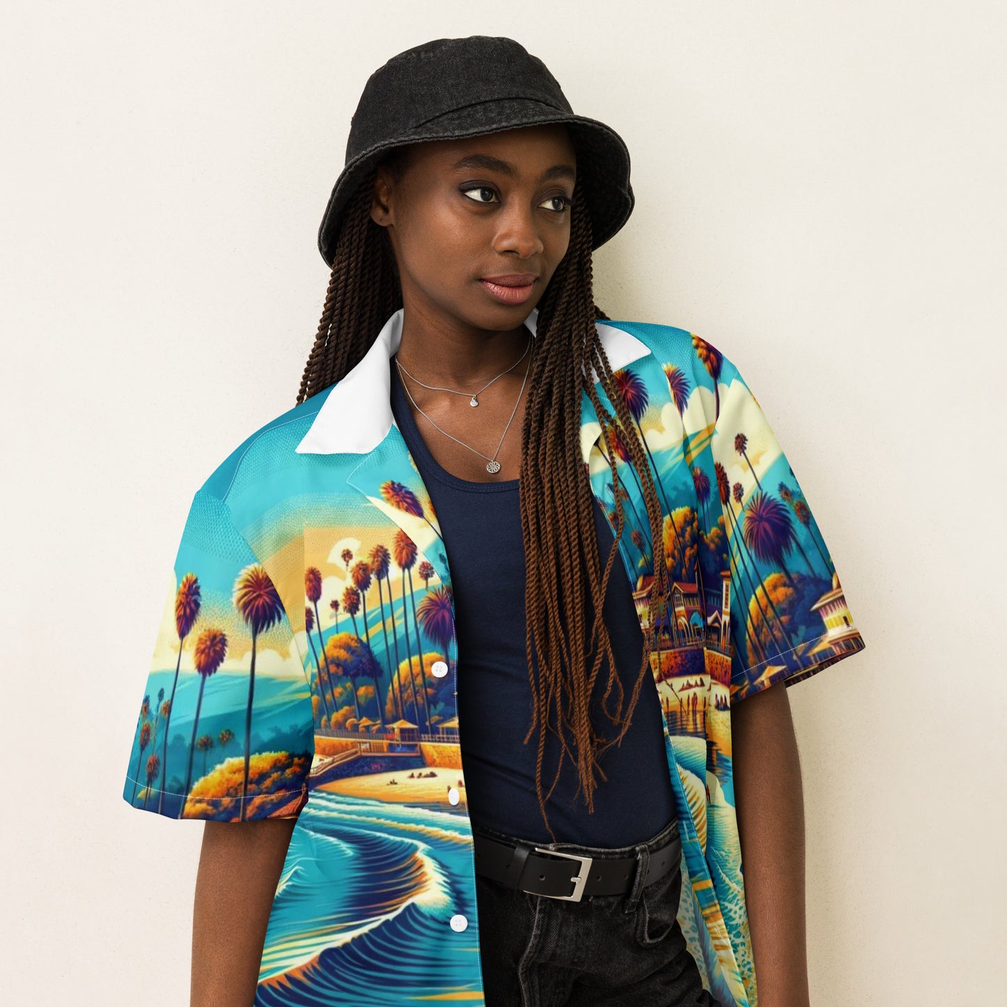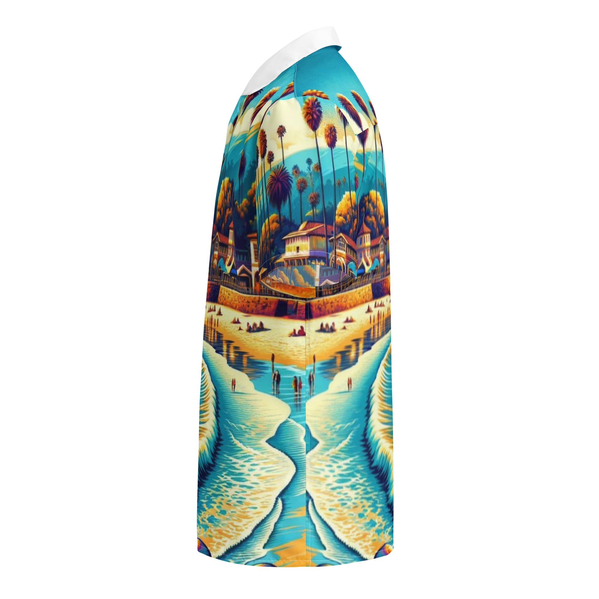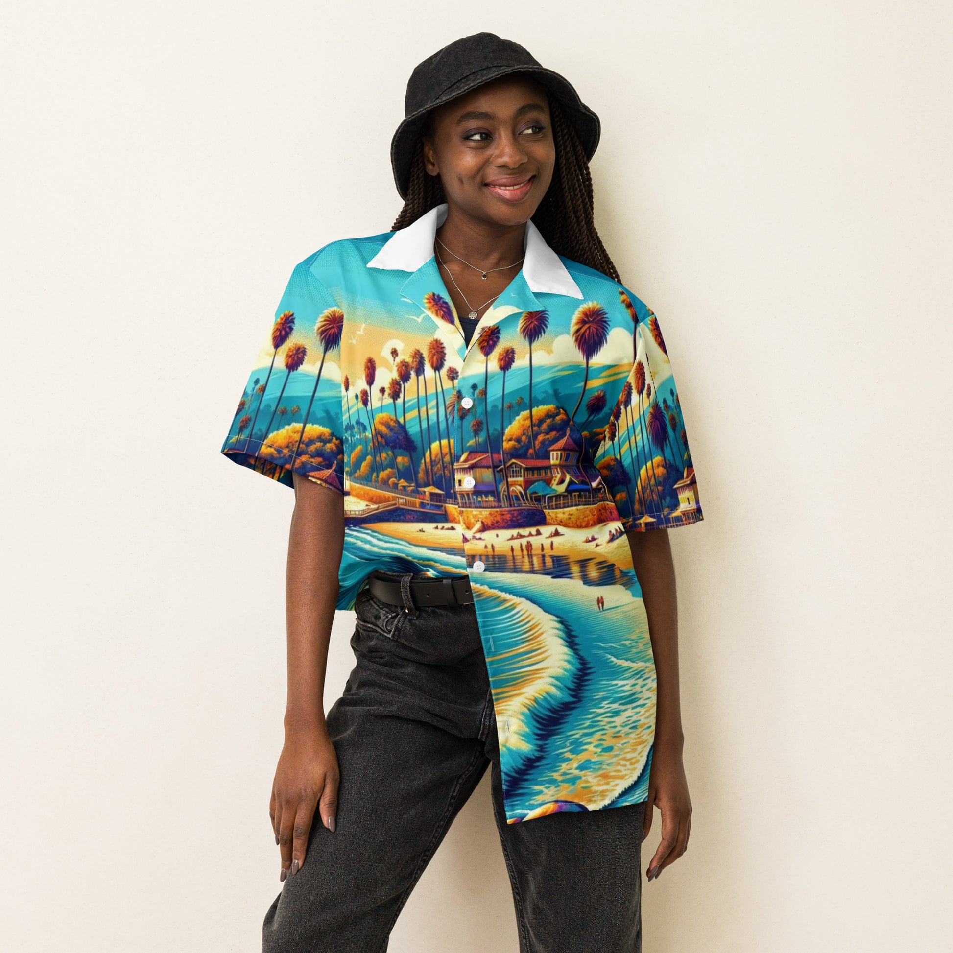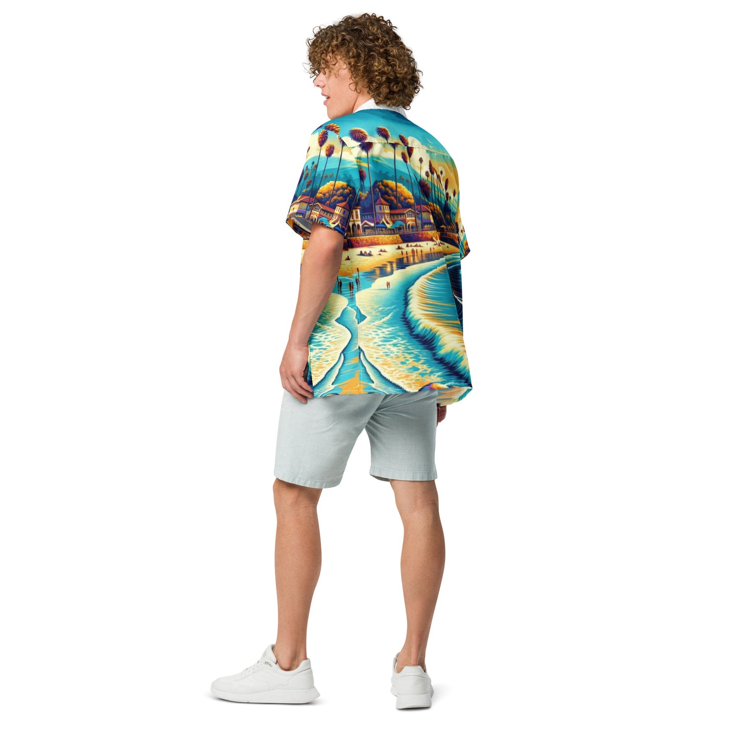 Santa Barbara Beach Scene Button-Up Shirt Adult, California Coastal Art All Over Print
