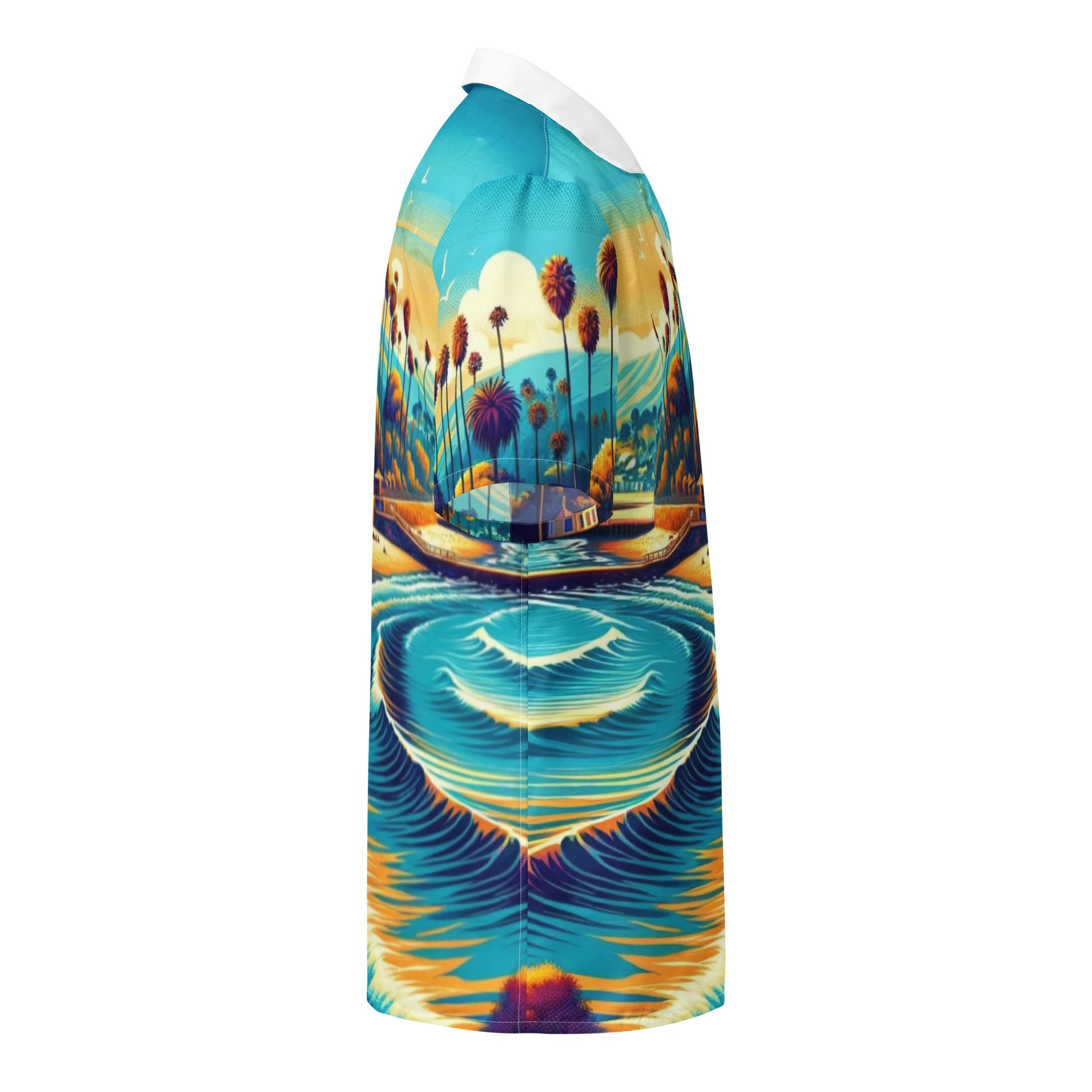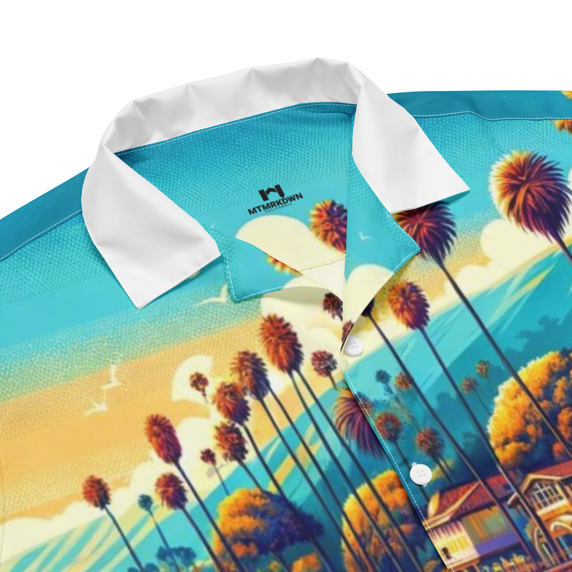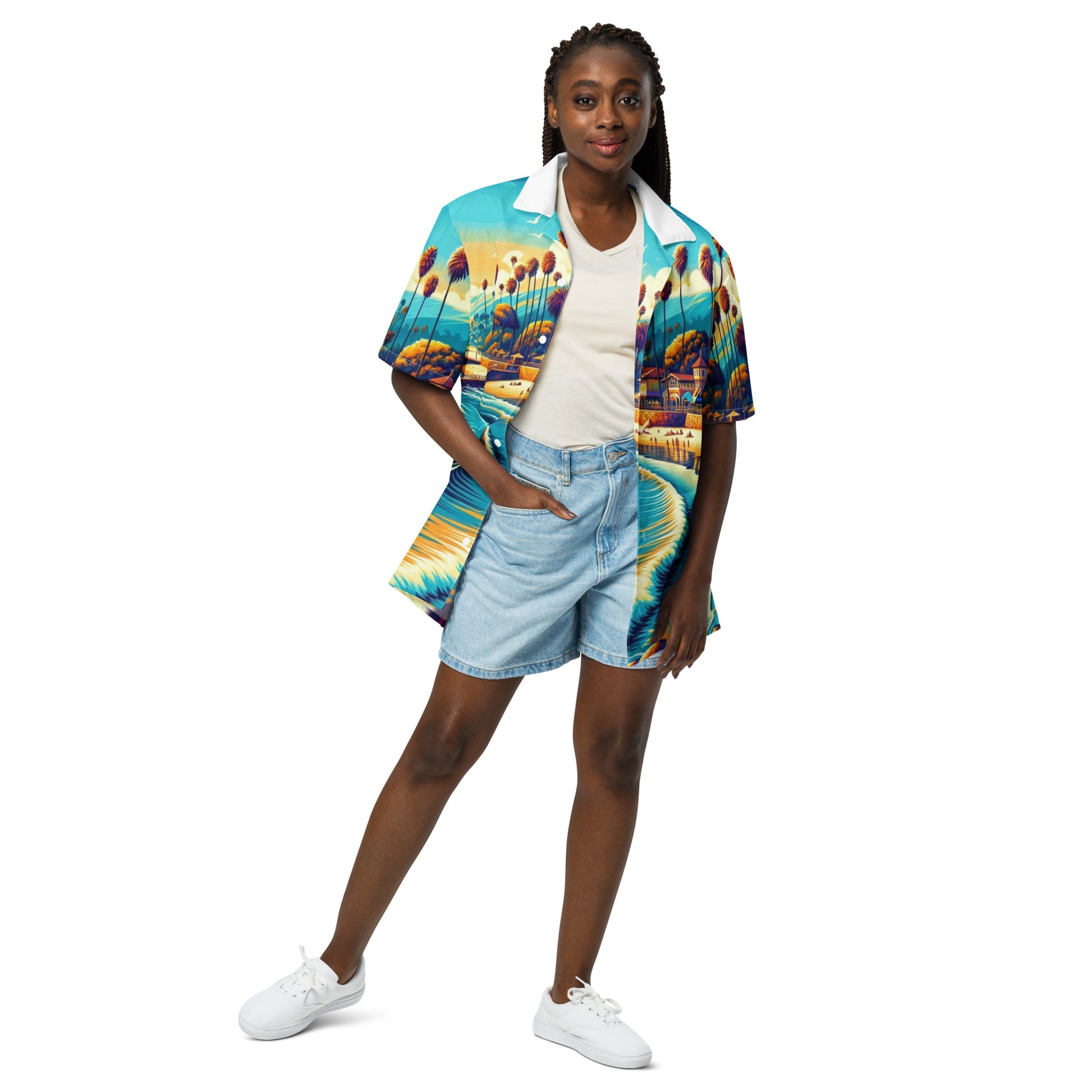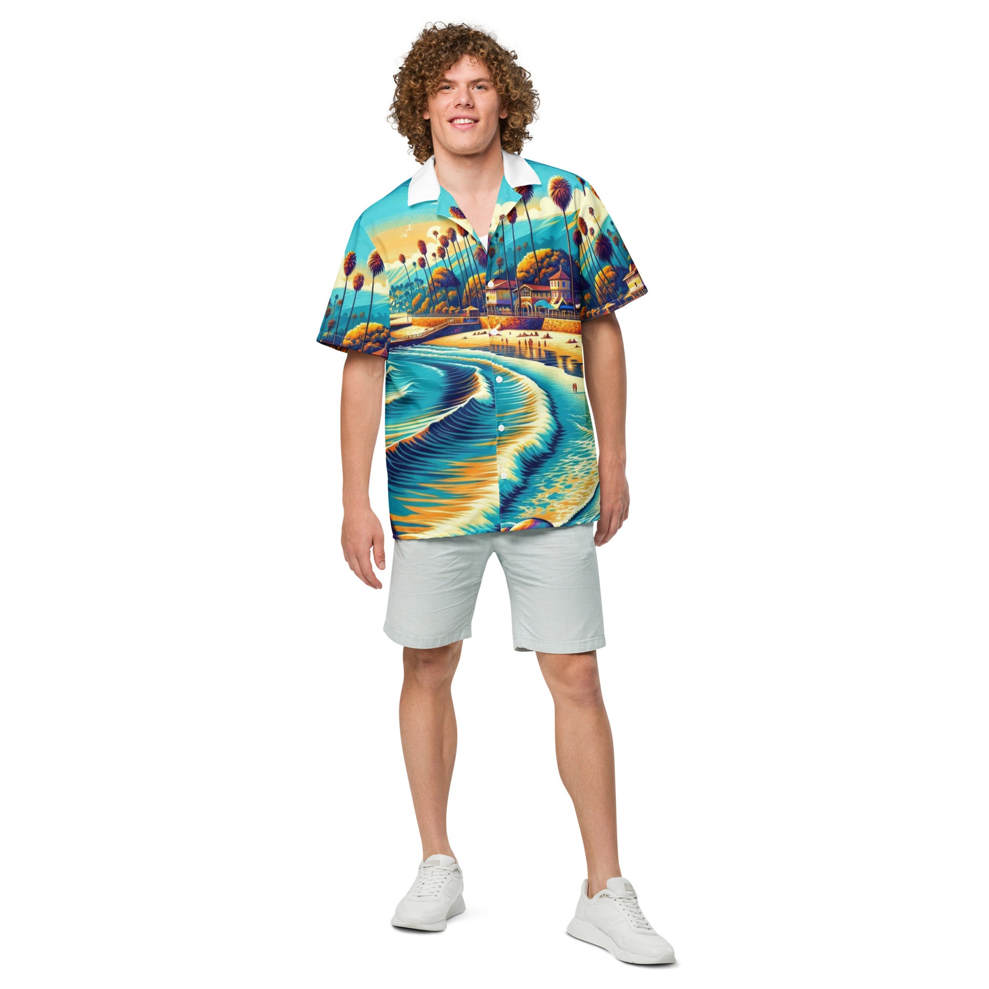 Santa Barbara Beach Scene Button-Up Shirt Adult, California Coastal Art All Over Print