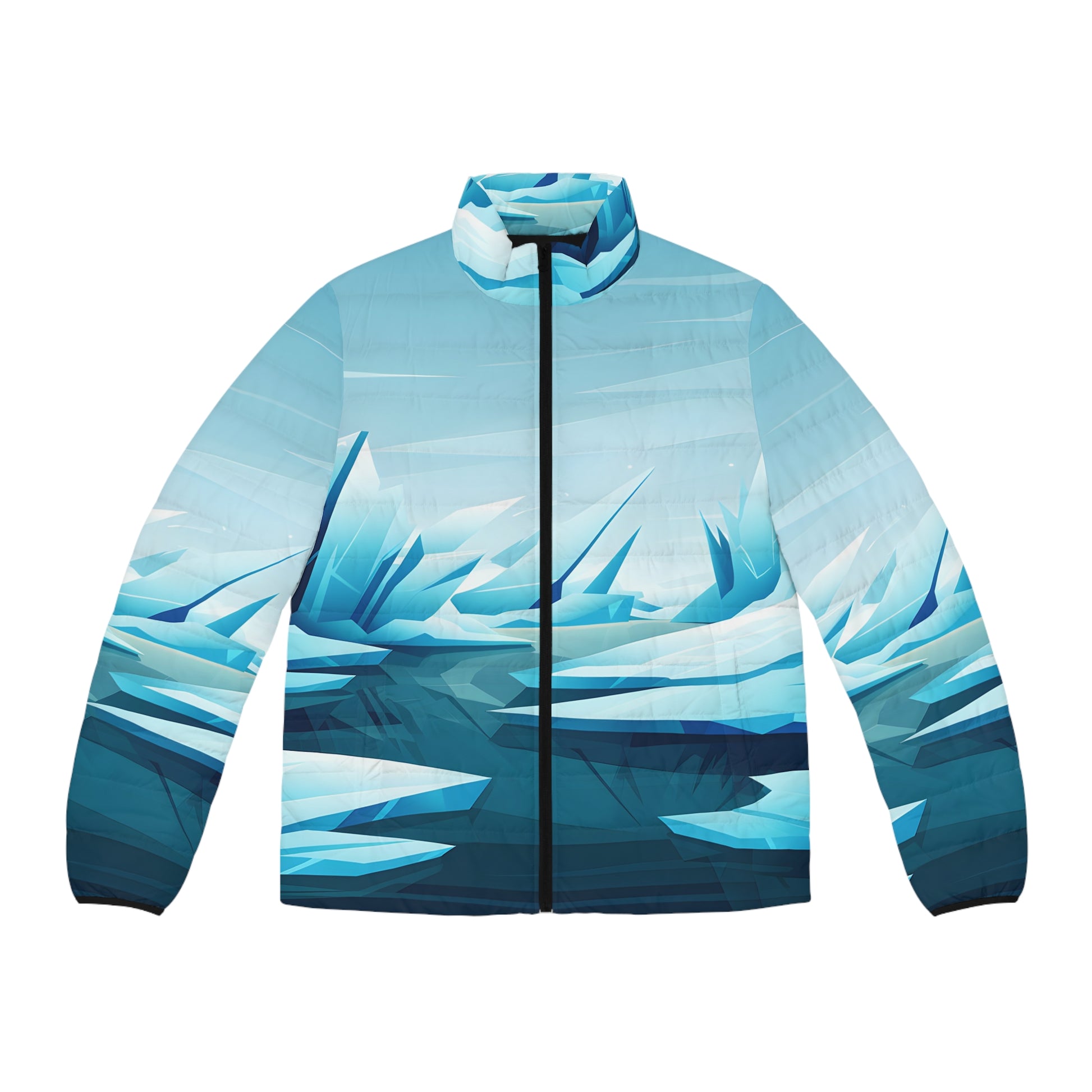 Stylish Waterproof Puffer Jacket with Polar Ice Artwork for Outdoor Adventures