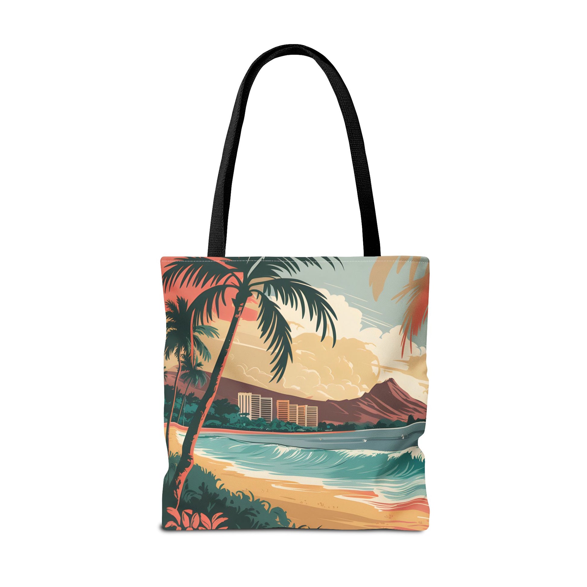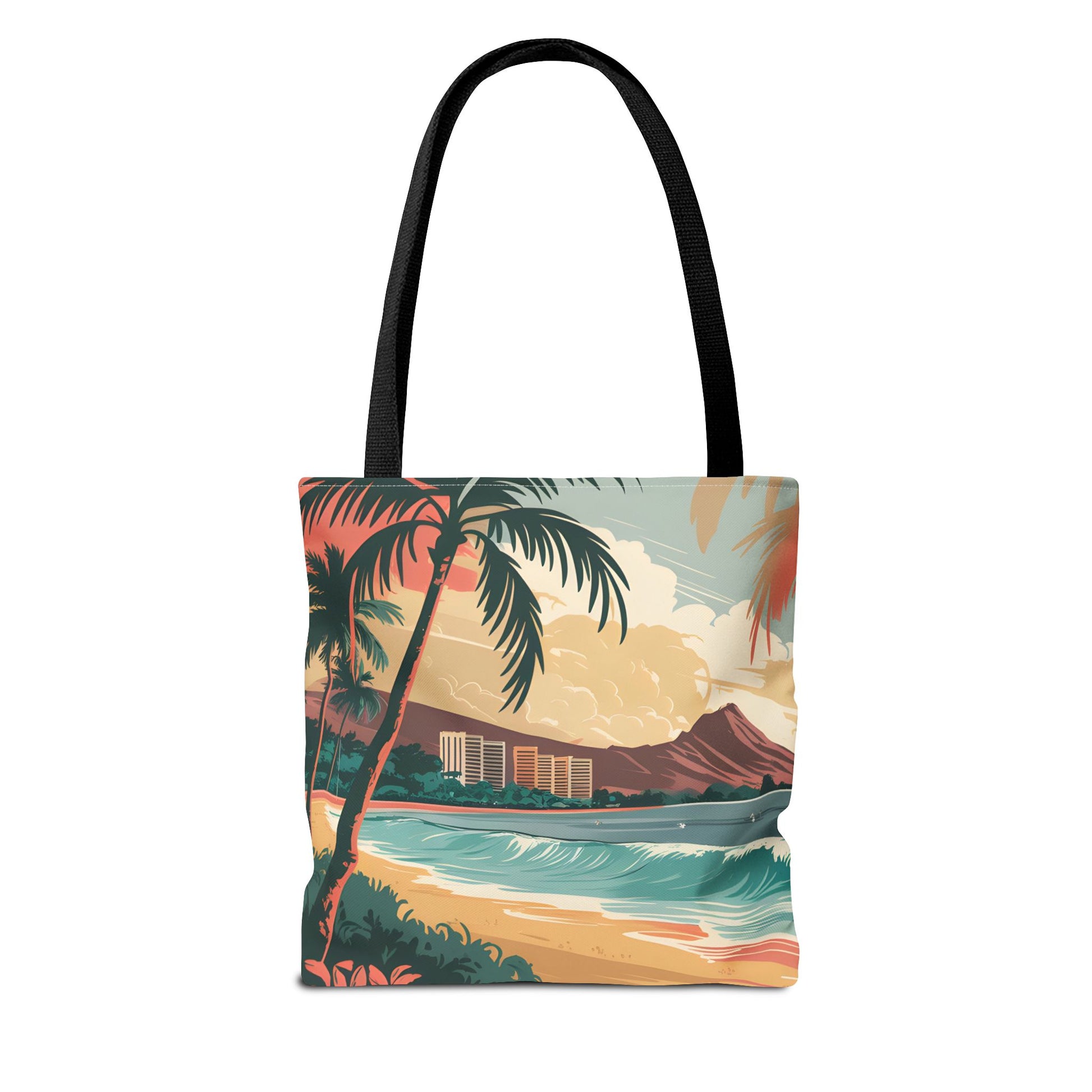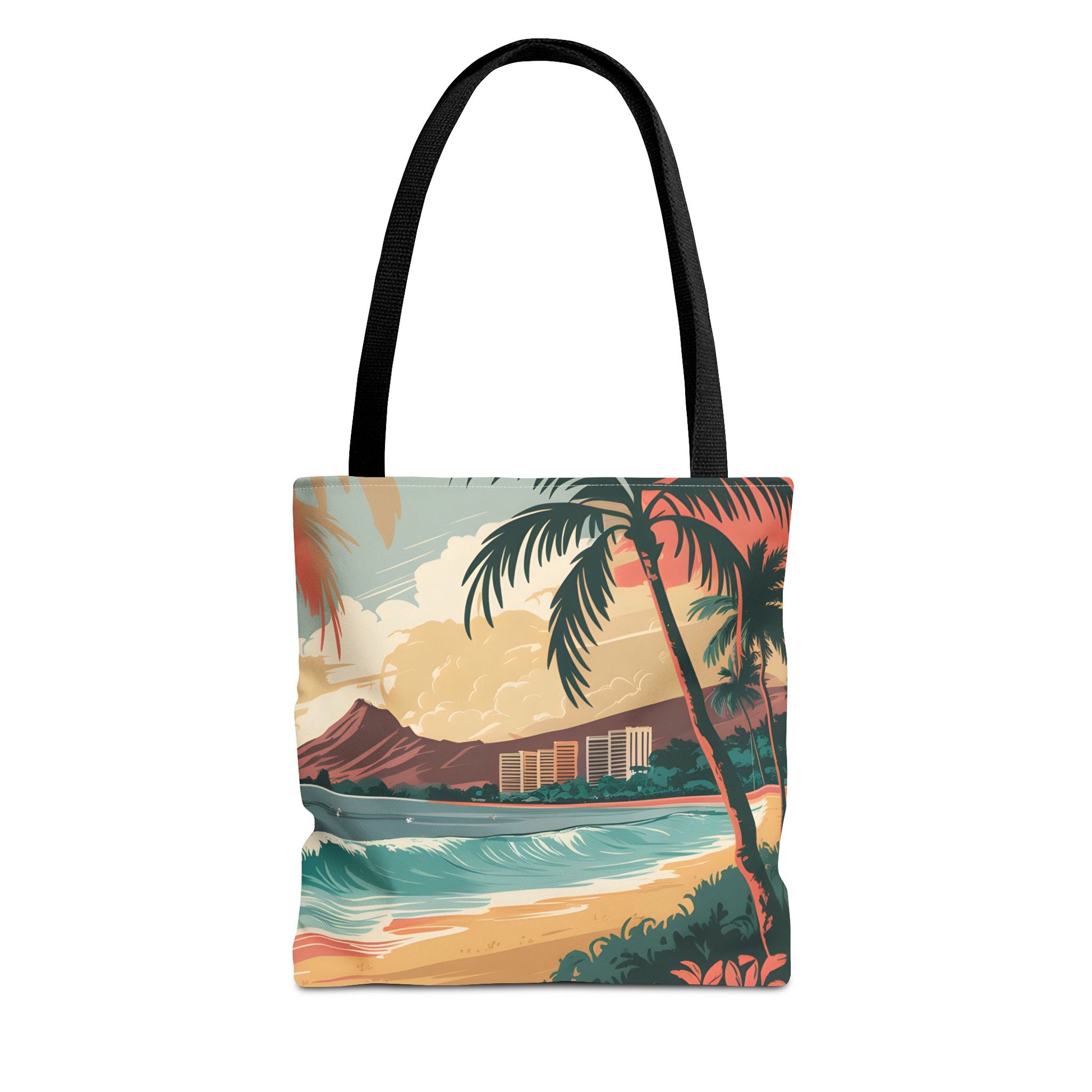 Waikiki Tropical Beach Tote Bag All Over Print Palm Trees Ocean View Summer