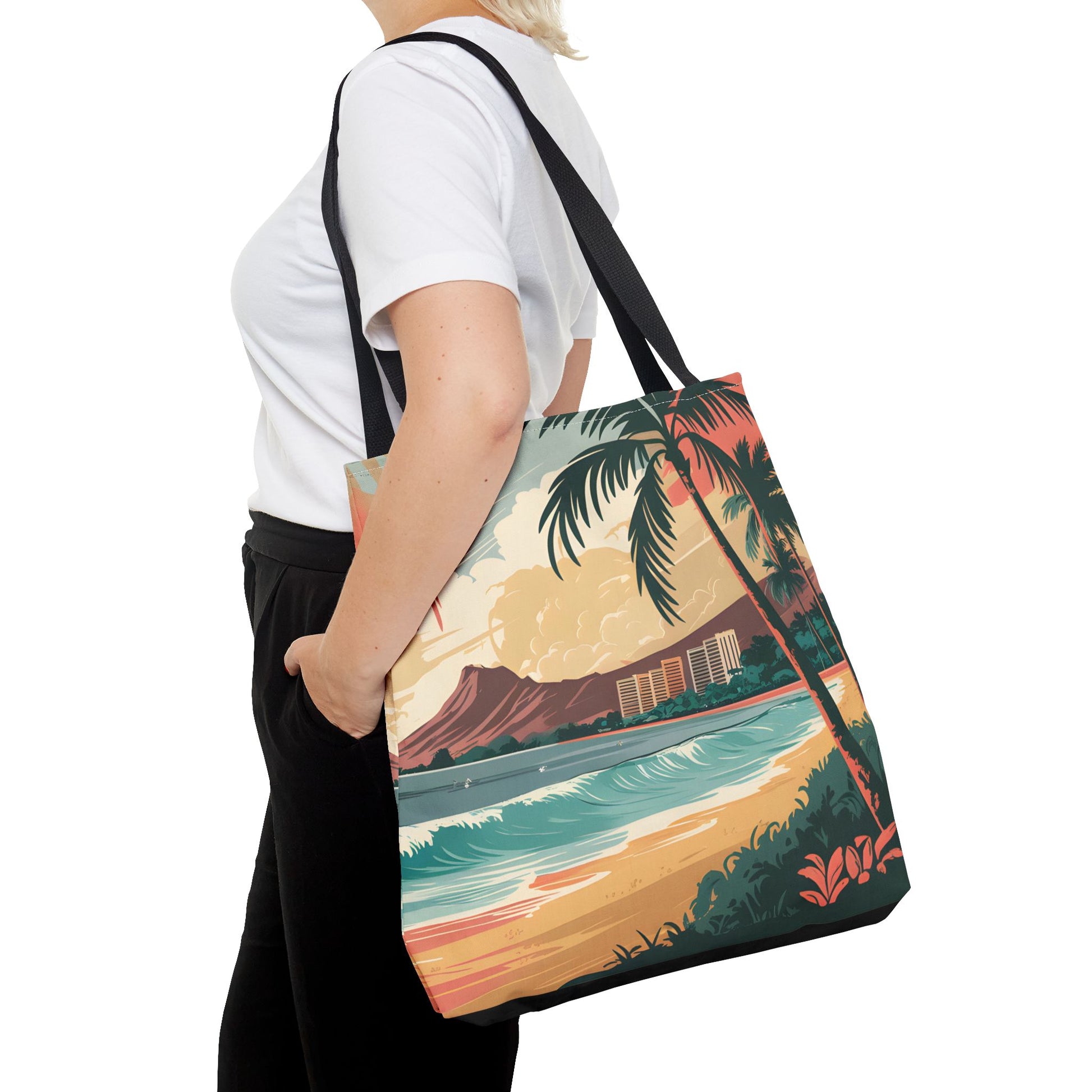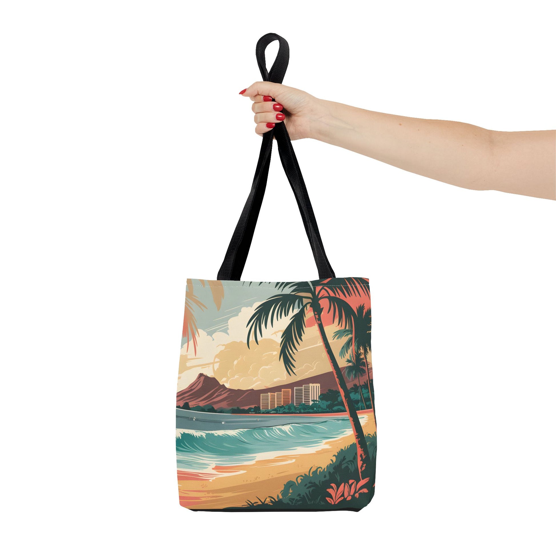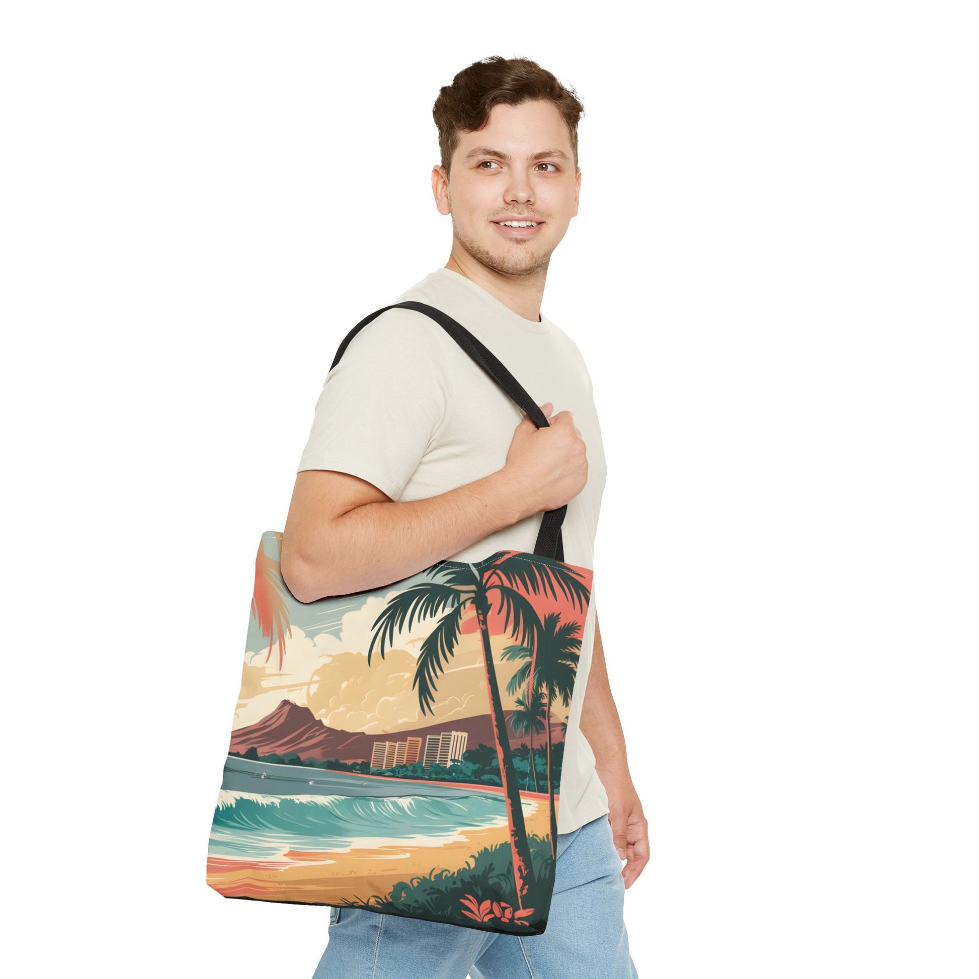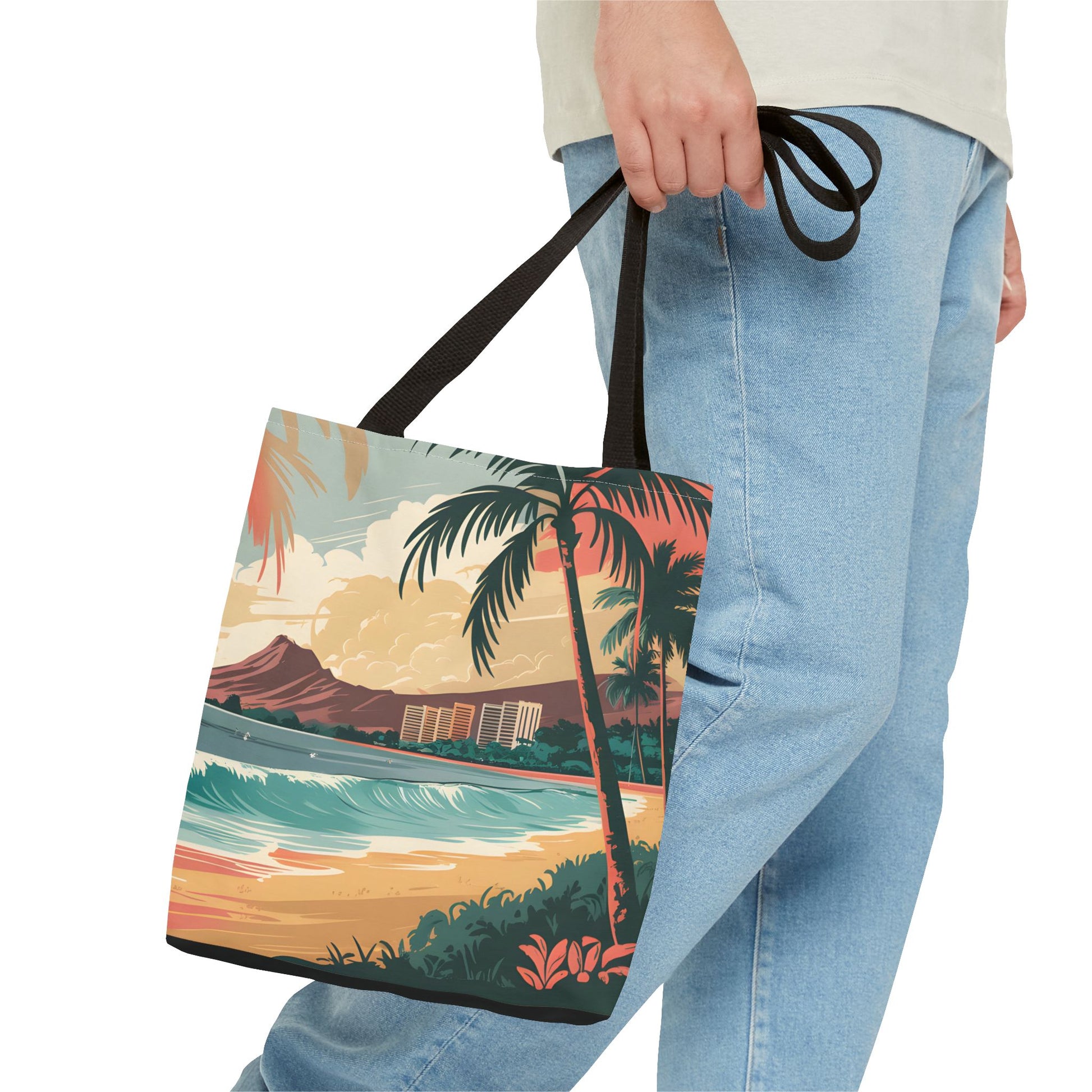 Waikiki Tropical Beach Tote Bag All Over Print Palm Trees Ocean View Summer